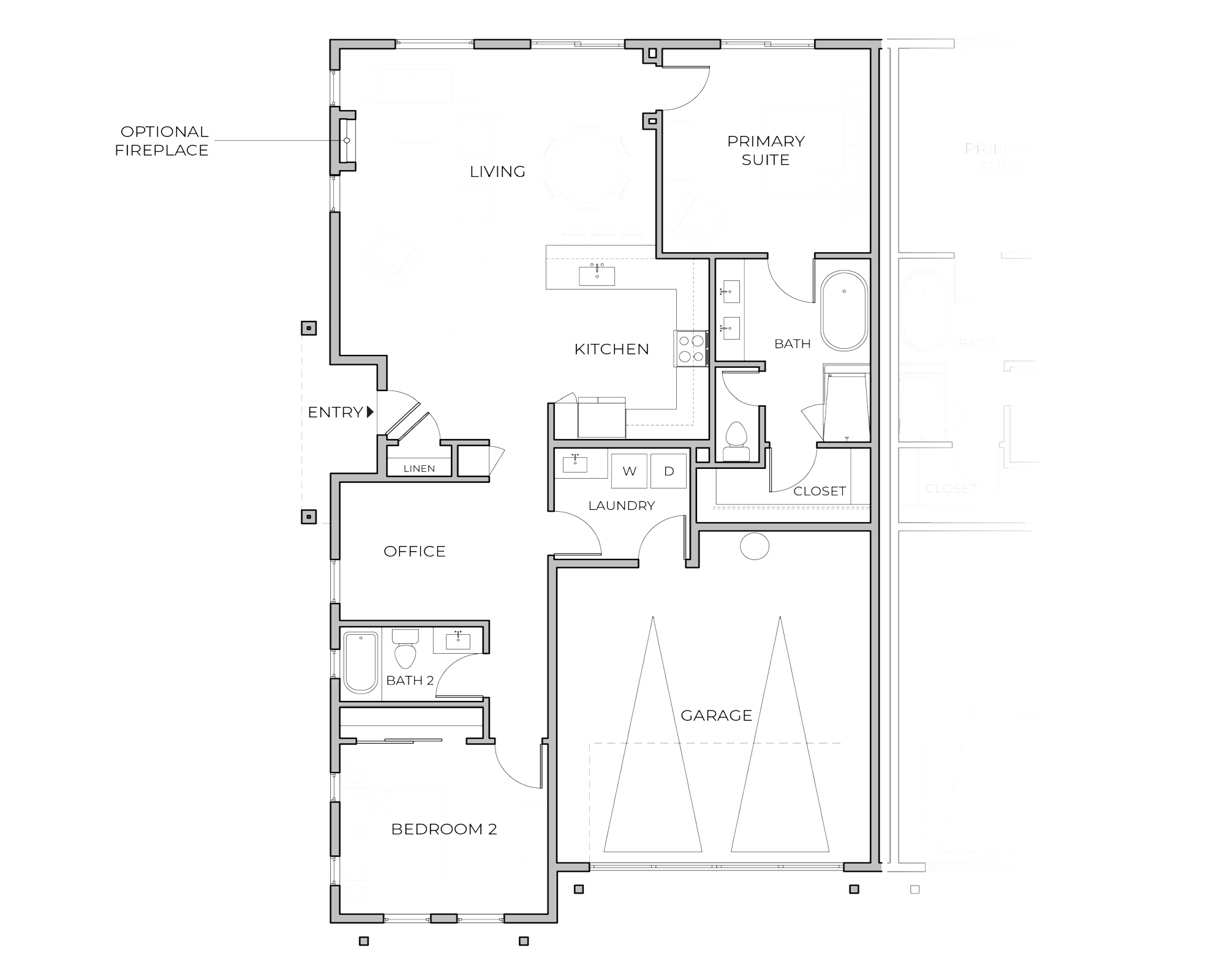 Optional fireplace, optional second bedroom slider, and optional garage side-yard door