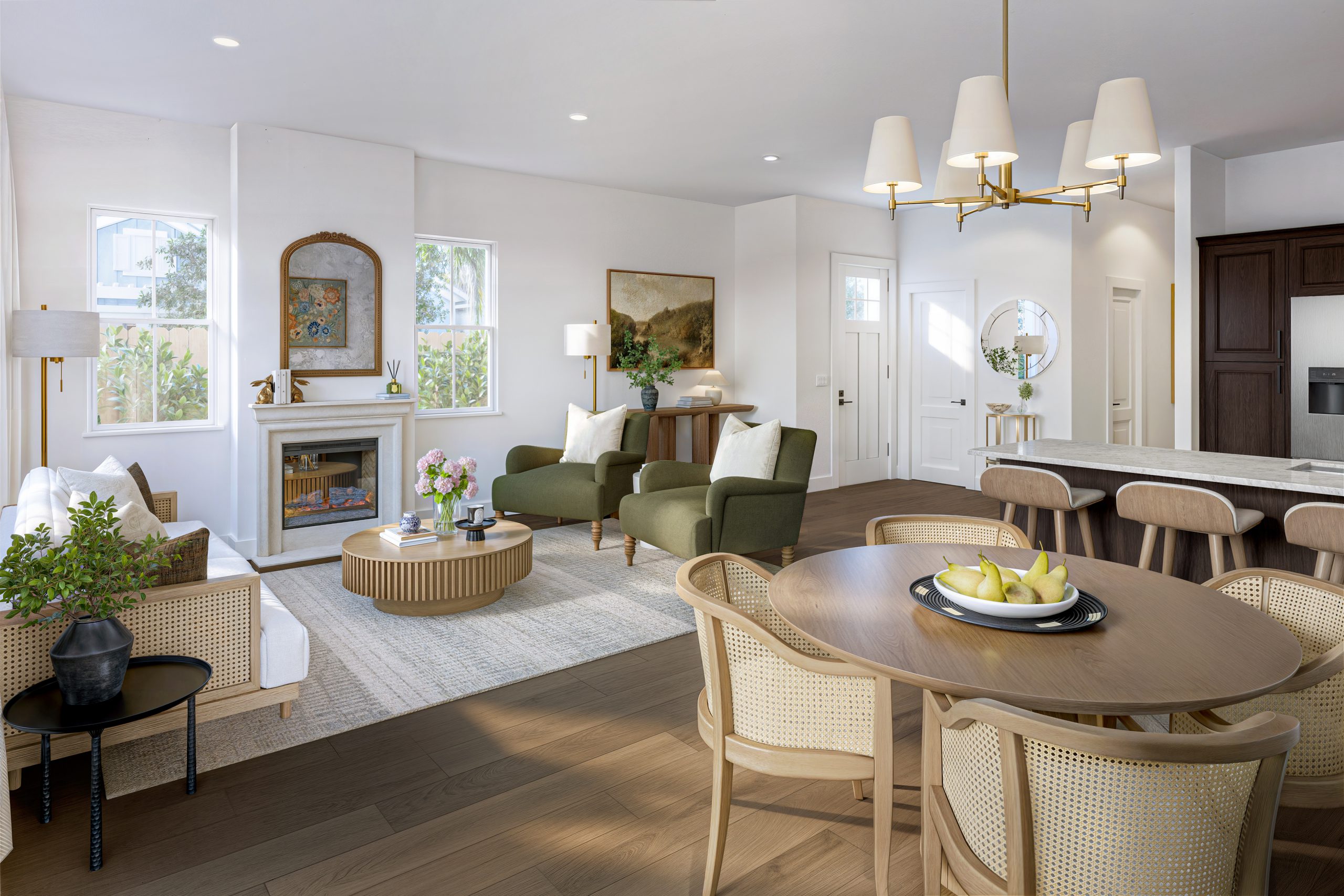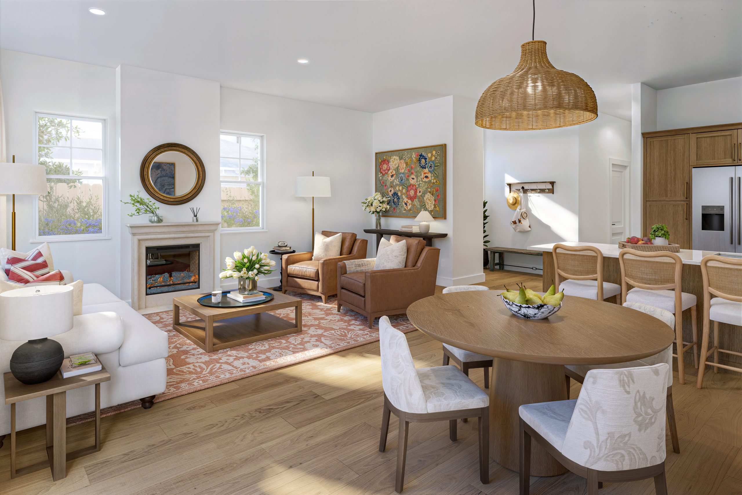 Open living, kitchen, and dining with natural flow to the patio and yard